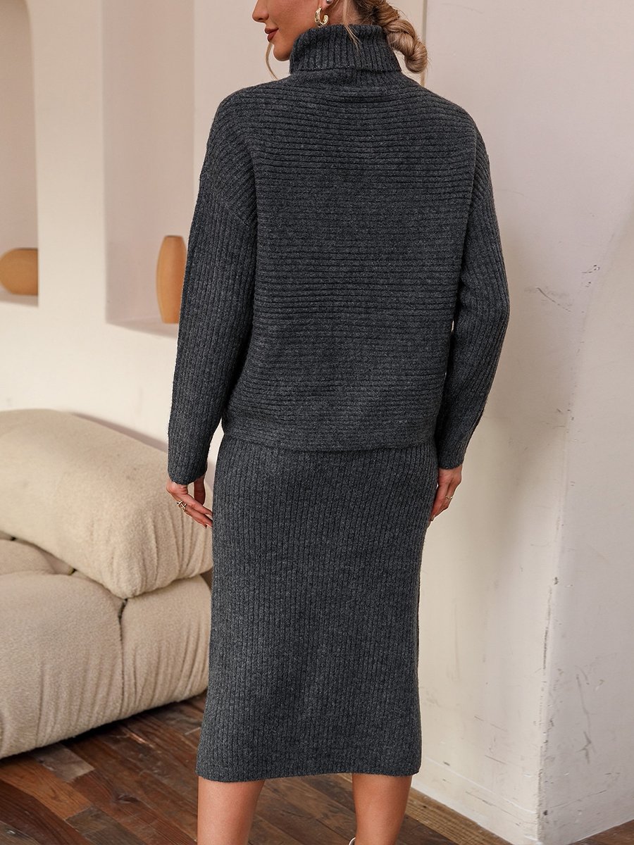 Maternity Elegant High-neck Knit Sweater Slit Under Skirt Two-piece Set